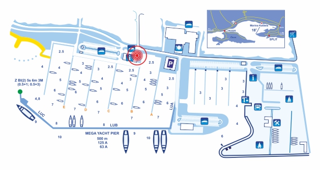 Izniman geografski položaj na središnjem dijelu Jadrana kao i stručno isplaniran projekt marinu Kaštela čine: